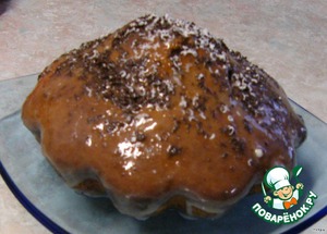 Я его немножко украсила. сварила глазурь на водяной бане:шоколад+мед+мол око. Отлично застывает, сверху посыпала немножко тертым белым и черным шоколадом.