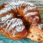 Яйца взбить с сахаром, добавить муку, соду, сухофрукты, орехи, тертую цедру лимона, молоко, вымесить до однородной массы.