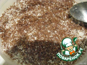 часть крошки,примерно пол стакана отсыпать в отдельную миску и добавить кокосовой стружки