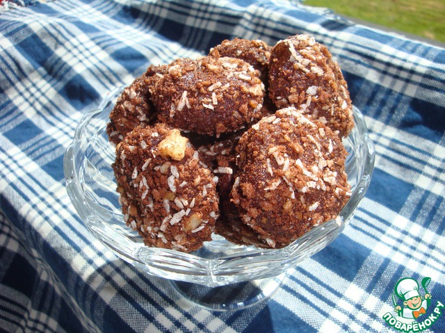 печенье и орехи перемолоть в комбайне до мелкой крошки