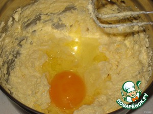 • Размягченный маргарин растереть с сахаром, затем втереть яйцо.