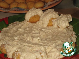 На тарелку выложить немного шариков в один слой, намазать на них слой крема.