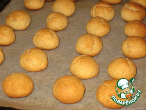 Чем шарики меньше, тем вкуснее получится тортик. Шарики катаются легко, пекутся тоже, только успевай меняй партии ))))))
