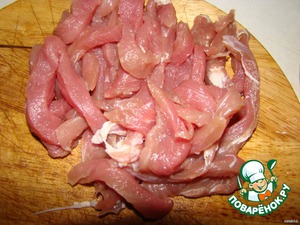 Мясо режем на тонкие пластики.. (я сегодня брала свинину)