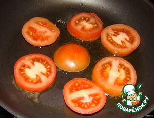 Помидоры режем на кружочки и обжариваем немного на растительном масле...