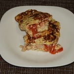 Даже используя ваш рецепт надо было всего лишь в обжаренное мясо (вашим способом), добавить помидорки, потушить 1-2 минуты, а потом вашу же смесь яичную влить в мясо с помидорками.
