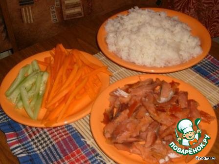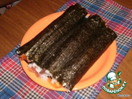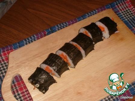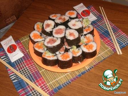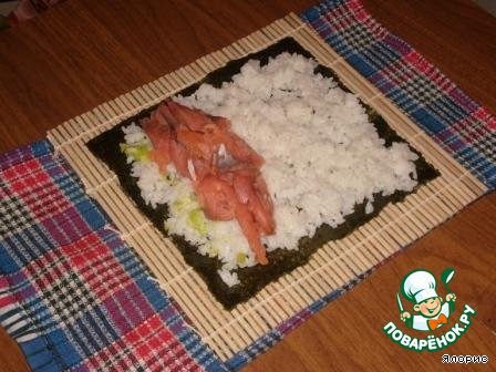 Попыталась приготовить своим мужчинам роллы - никогда не пробовали, но много слышали. А в последнее время все просто помешались на японской и китайской кухне, только и слышно - роллы, суши... Купили высушенные водоросли, специальный рис, циновку, хрен - васаби, соевый соус и копченую горбушу: на сырую все-таки не решилась: ну, не доставляют к нашему столу самолетом свежевыловленные морепродукты во льду...