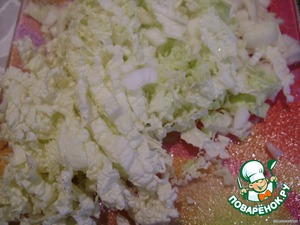 • Нарезать пекинскую капусту и яйцо.
