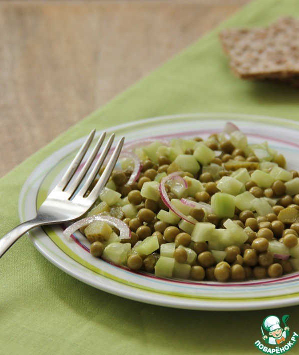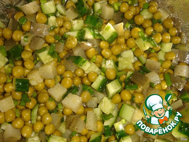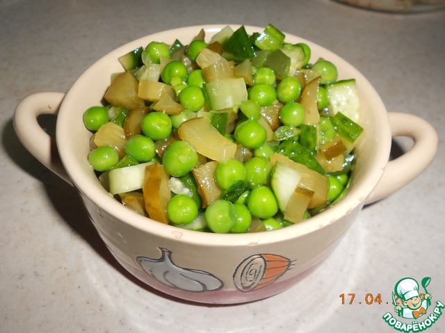 - Горошек зеленый (консервированный, без жидкости 265 г) — 1 бан.