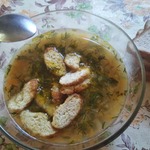 Для сухариков: хлеб нарезать кубиками и обжарить до румяности в небольшом количестве растительного масла.