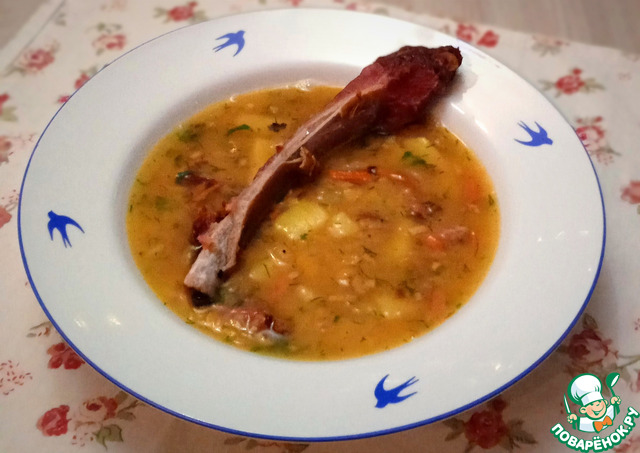 Рецепт «Гороховый суп с копчеными ребрами»: