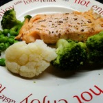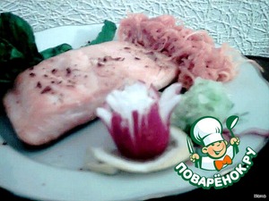 Филе семги без кожи натереть солью, поперчить, уложить в пароварку, добавить зелень веточками и сбрызнуть соком лимона. Готовить 25 минут.