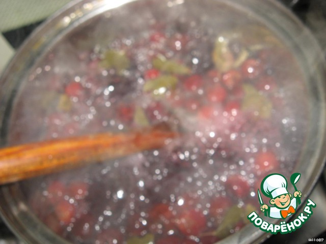 В кастрюльку положим размороженную вишню и листочки (если есть).
