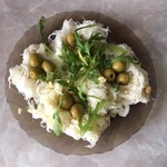 Добавить заправку из орехов, чеснока, лимонного сока, оливкового масла и соли, хорошо перемешать.