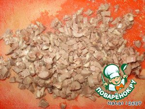 • Куриные сердечки нарезать мелким кубиком.