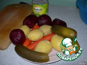 Итак... моем, отвариваем, сливаем, охлаждаем и чистим овощи.