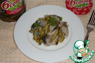 Слегка солим (не злобствуем! Ведь мы используем соленые огурцы!!!) и заправляем растительным маслом или майонезом.