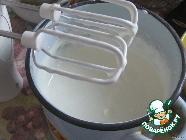 Делаем крем - сметану взбиваем с сахаром до растворения сахара. Я еще загущаю крем загустителем (или крахмалом, как сейчас т.к. загустителя не было)