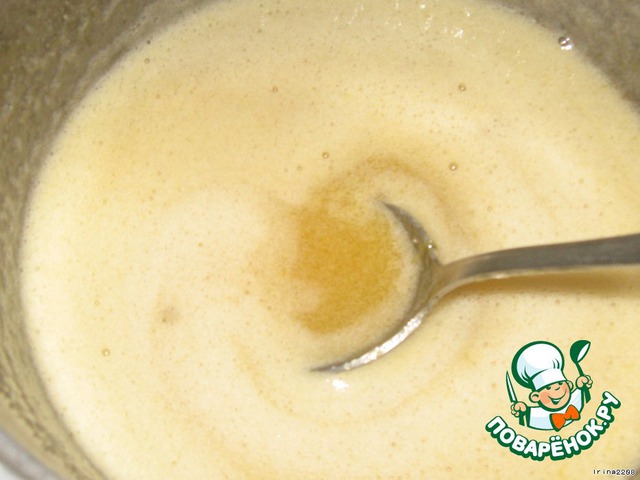 Мед, сахар и яйца нагреть на водяной бане до растворения сахара (в оригинальном рецепте все просто смешивается,но как по мне лучше ,чтоб все составляющие растворились)