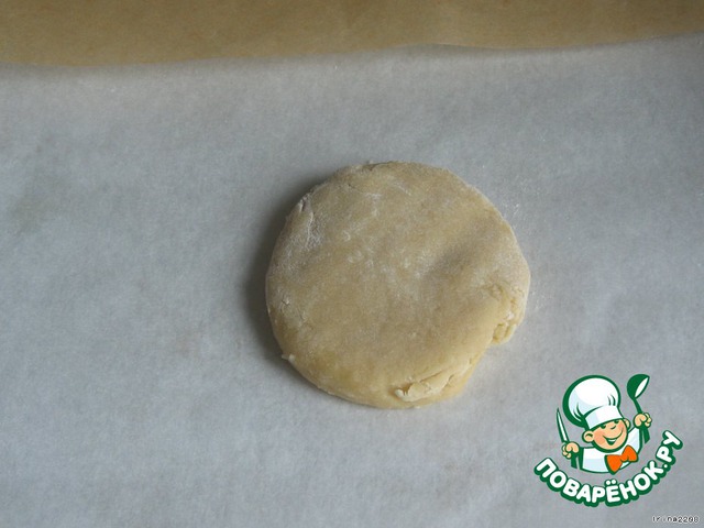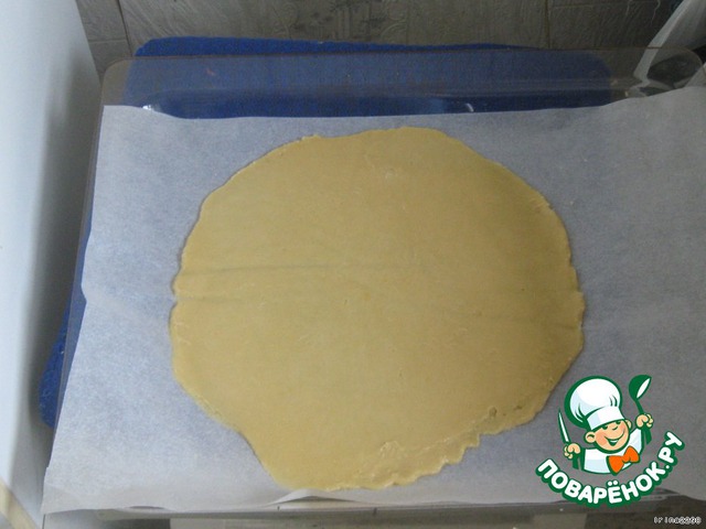 Я поделила тесто на 4 части, из каждой сделала такой вот колобок (припорошила его мукой т.к. тесто все равно липнет к скалке)
