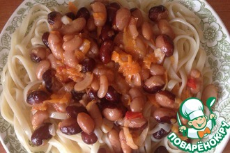 Смешиваем пассерованные овощи с предварительно отваренной фасолью.