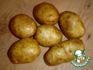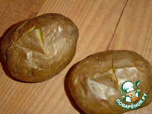• То нужно сделать на картофелинах с одной стороны надрезы крест-накрест и отвернуть кожицу наружу.
