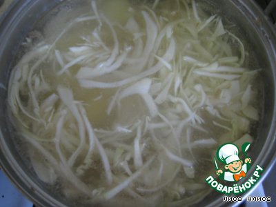 Через час добавляем туда же картофель и шинкованную капусту. -