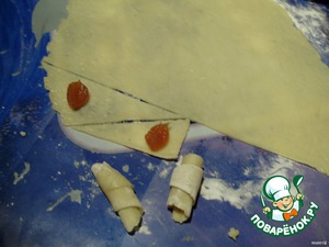 на основание треугольничка кладем повидло и скатываем в рогалик -