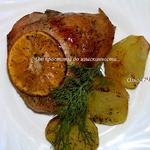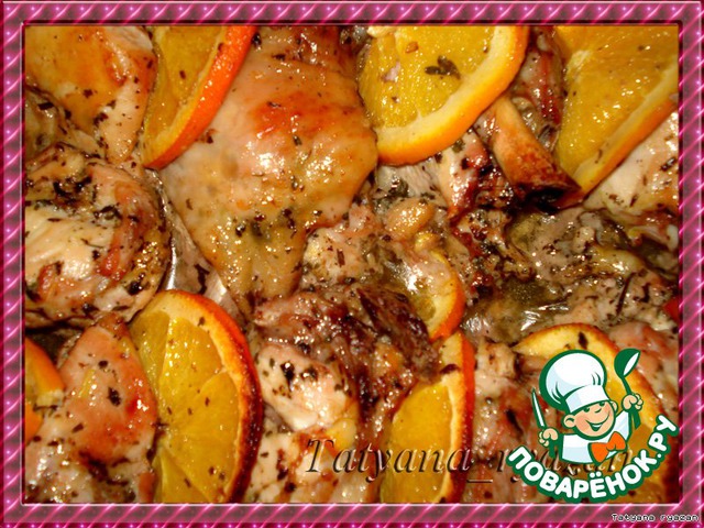 Интересное сочетание пряных трав с апельсинами, которые придают куриному мясу оригинальный вкус. Мясо получается нежным и сочным. Нам очень понравилась такая курочка, может ещe кому-нибудь придется по вкусу :)