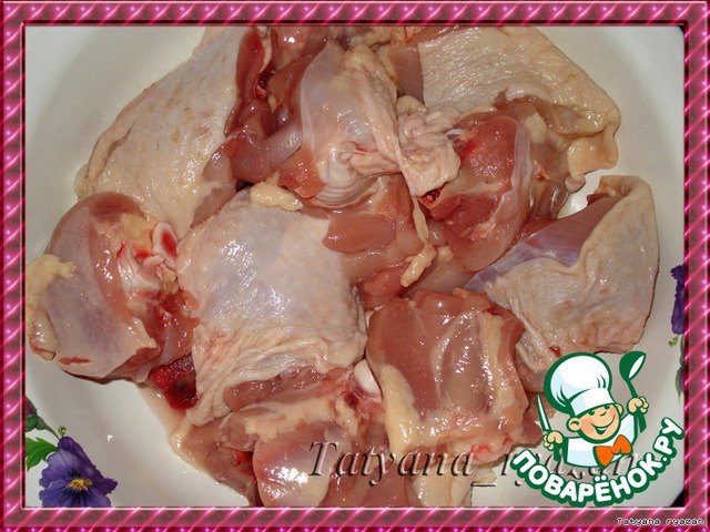 Поставить в разогретую до 200 градусов духовку и запекать до готовности. Курицу во время запекания следует поливать выделившимся соком. -