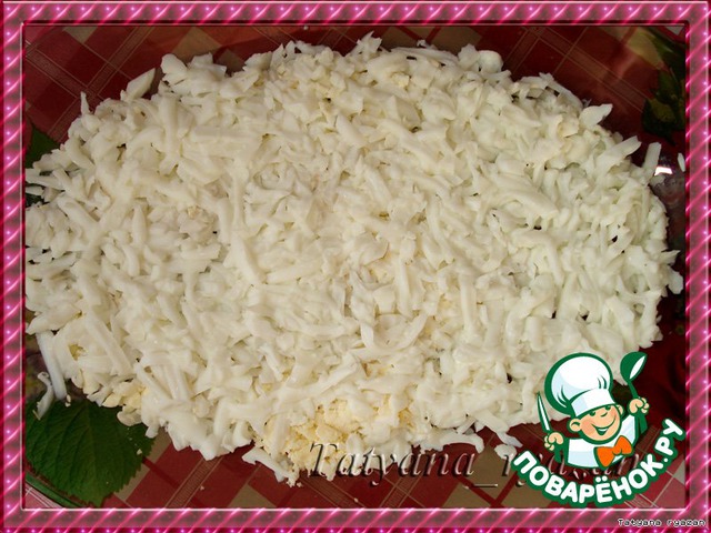 Натереть на крупной терке сыр, сформировать следующий слой.