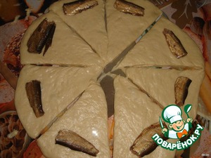 Две части теста сделала со шпротами. Оставшееся тесто - с сыром.