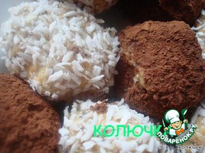 Делаем шарики и обволакиваем одни в какао, другие - в стружке и в сахарной пудре, и ставим в холодильник на пару часиков