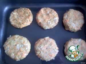 Через 10 минут вынуть противень, котлетки перевернуть и еще запекать 10 минут. -