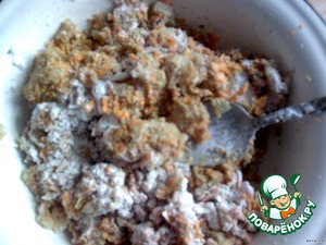 Все это соединить вместе в миске, добавить чеснок из чесночницы, кориандр, тмин, перец, соль, муку. Перемешать и оставить на 1 час.