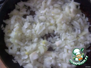 Лук мелко нарезать и обжарить на подсолнечном масле