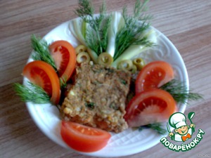 Готовую запеканку нарезать на кусочки, подавать со свежими овощами.