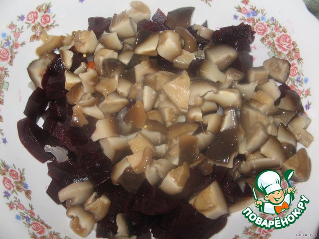 Рецепт «Салат свекольный с маринованными грибами и орехами»: