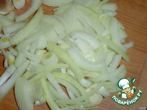 Отдельно обжарьте в растительном масле лук, нарезанный полукольцами.