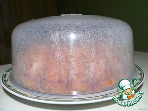Когда сироп впитается, перевернуть кекс на блюдо, накрыть ии... оставить остывать. Вот это как раз самое трудное!!!! Пахнет!!!