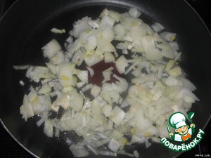 Добавить томатную пасту и немного воды (воды ровно столько, чтобы можно было всё хорошо размешать. Её количество зависит от густоты томатной пасты).