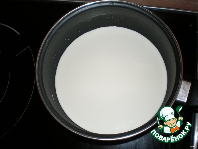 В отдельной кастрюльке смешать молоко со сливками, вскипятить