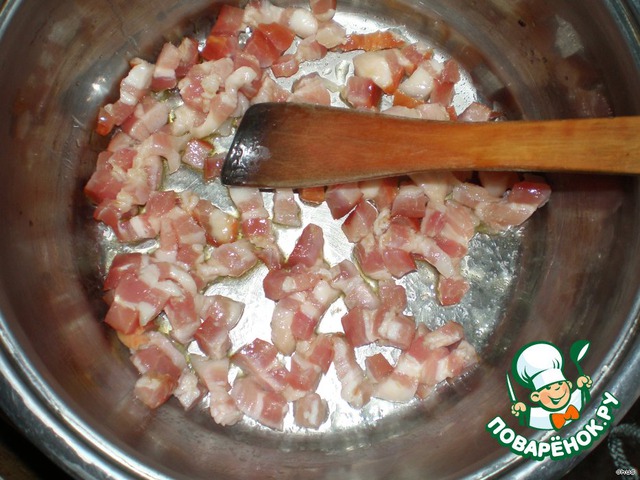 Конечным этaпом является добавление соуса табаско, соли (или соевого соуса), перца горошком и зеленушки