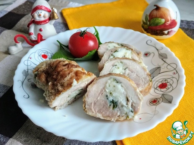 Рецепт «Рулетики из куриной грудки с плавленым сыром»: