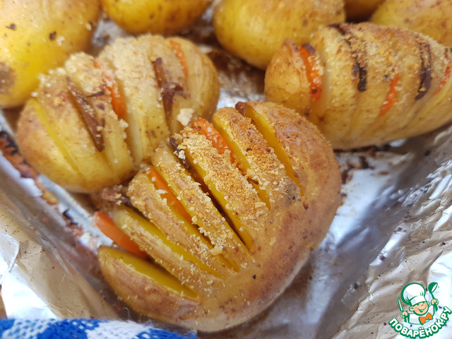 Рецепт «Картофель "Гармошка" с грибами и морковью»: