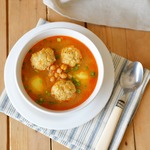 Замоченный горох выложить в бульон или в воду, проварить до полуготовности