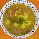 при подаче в кясу кладем (по вкусу - кто любит сумак, сухую мяту), от сумака суп будет с кислинкой и цвет будет красноват. Или же просто посыпать суп мелко нарезаной зеленью.