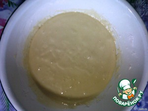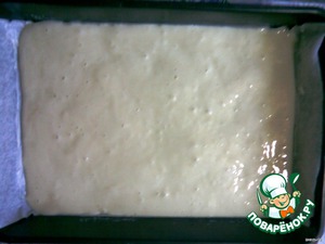 Противень застелила пергаментом, хорошенько смазала его сливочным маслом и вылила тесто.