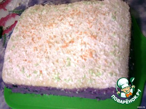 Бока обмазала кремом, сверху обсыпала сахарной пудрой и кокосовой стружкой.