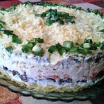 Вкусный слоеный салатик с грибами